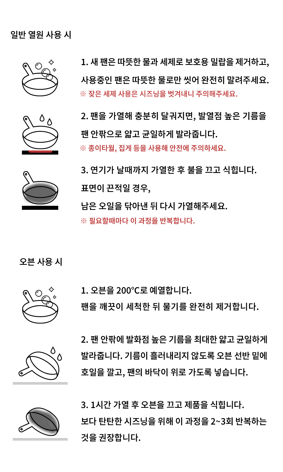 시즈닝을 통해 자연스러운 논스틱 층을 만들어주세요.