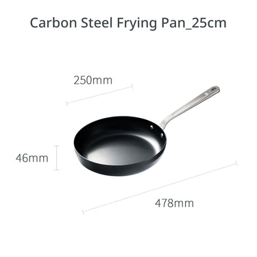 Unlock the culinary magic of carbon steel with our Carbon Steel Frying Pan, combining the high heat capabilities of cast iron and thinner, stronger, rapid-heating properties of stainless steel. Ideal for sautéing, searing, and more, its high-sloped walls and spacious cooking area make it an indispensable kitchen tool. With each use and seasoning, it develops a natural nonstick layer, transforming into a cherished heirloom for generations to come.